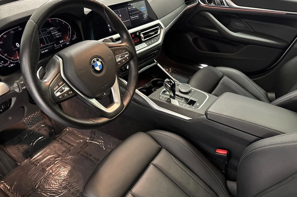 This 2022 BMW 4 Series 430i has a Clean Carfax, exterior, and interior. Key features include OPEN PORE FINE WOOD OAK GRAIN TRIM, HEAD-UP DISPLAY, HEATED FRONT SEATS, HEATED STEERING WHEEL, BLACK PERFORATED SENSATEC UPHOLSTERY, AMBIENT LIGHTING, PREMIUM PACKAGE, Sun/Moonroof, Rear Parking Aid, Navigation System, and much more!