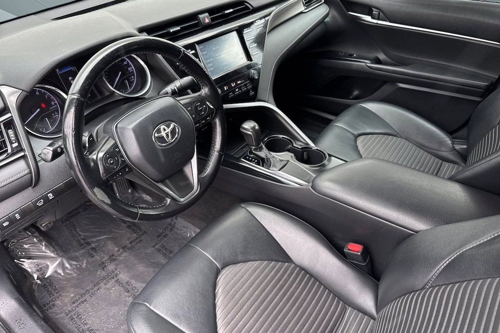 CLEAN CARFAX, 2019 Toyota Camry SE, Front Wheel Drive, Brake Assist, Bluetooth Connection, Premium Synthetic Seats, Immobilizer, Lane Keeping Assist, Lane Departure Warning, Front Collision Mitigation, Driver Monitoring, Back-Up Camera, Black exterior, and Black interior.